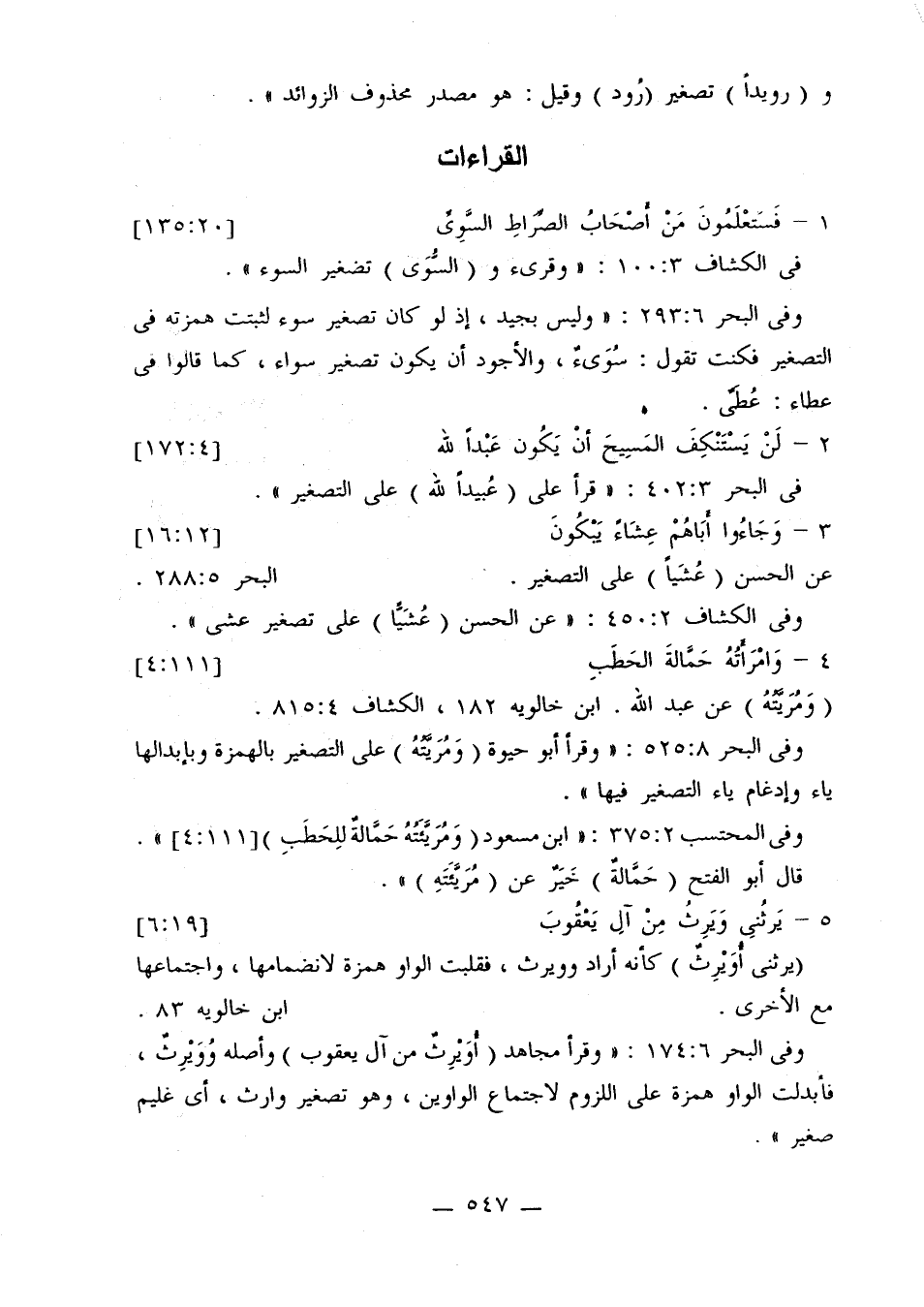 وفي البح ر 6: 174: «وقرأ مجاهد (أو يرث من آل يعقوب) وأصله وويرث، فأبدلت الواو همزة على اللزوم لاجتماع الواوين، وهو تصغير وارث، أي غلم صغير».