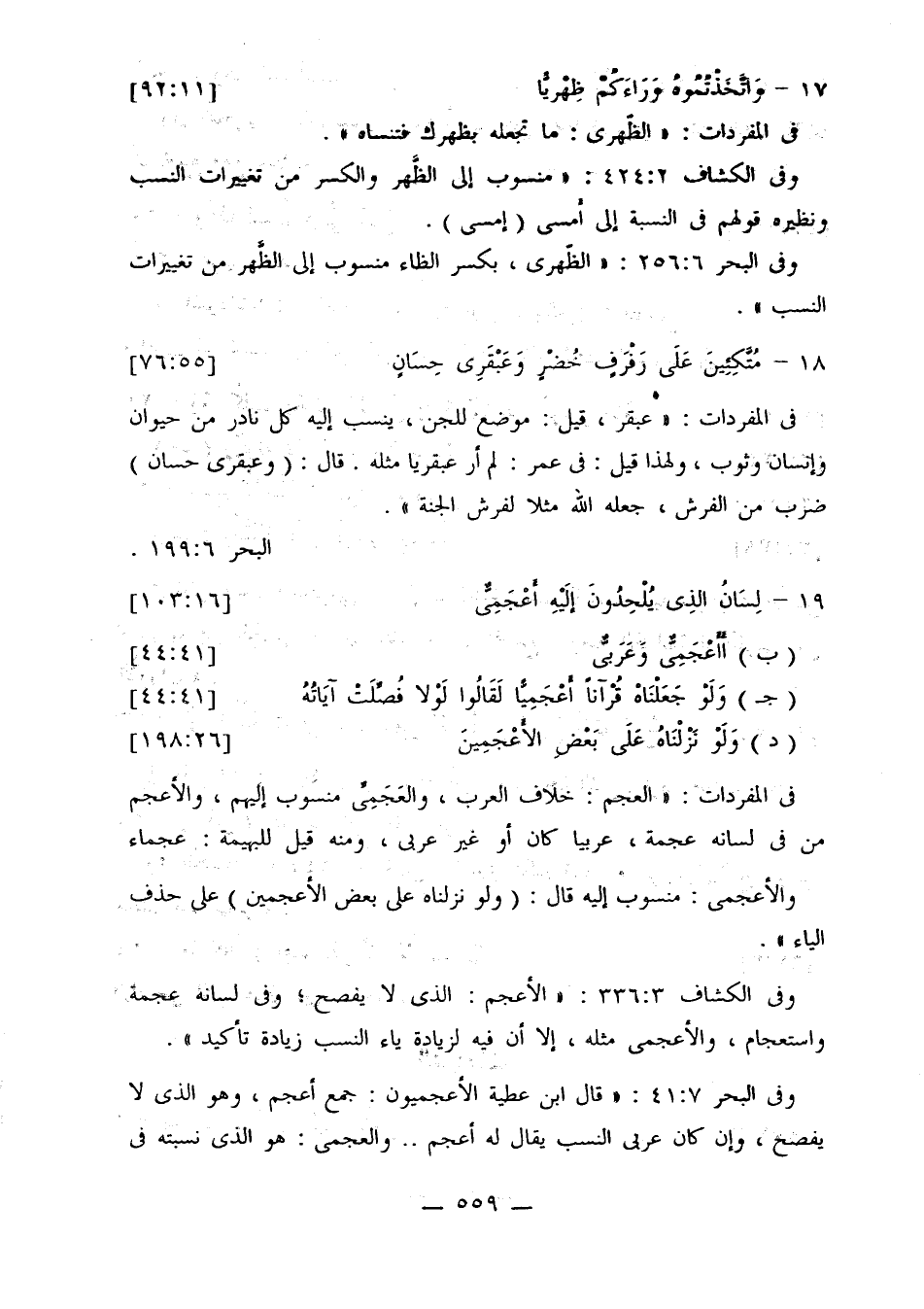 وفي البحر 7: 41: «قال ابن عطية الأعجميون: جمع أعجم، وهو الذي لا يفصح، وإن كان عربي النسب يقال له أعجم ... والعجمي: هو الذي نسبته في
