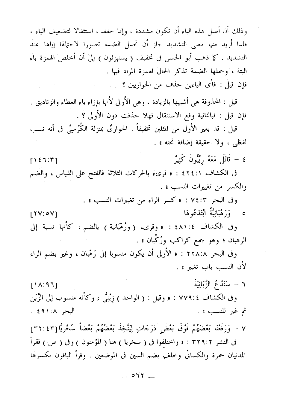 وفي البحر 8: 228: «الأولى أن يكون منسوبًا إلى رهبان، وغير بضم الراء لأن النسب باب تغيير».