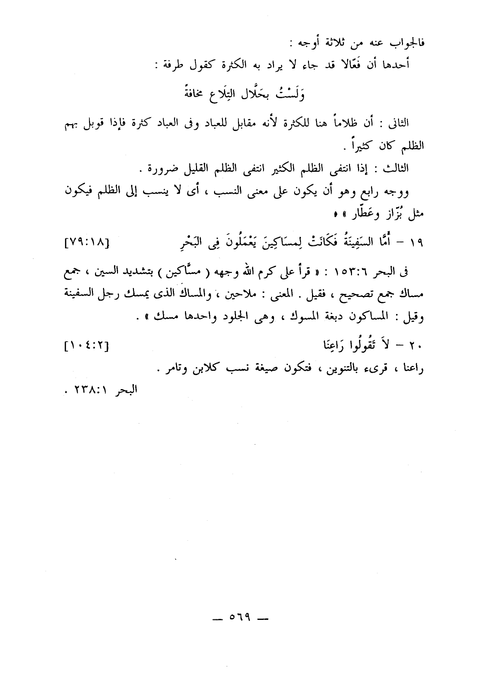 في البحر 6: 153: «قرأ علي كرم الله وجهه (مساكين) بتشديد السين، جمع مساك جمع تصحيح، فقيل. المعنى: ملاحين، والمساك الذي يمسك رجل السفينة وقيل: المساكون دبغة المسوك، وهي الجلود واحدها مسك».