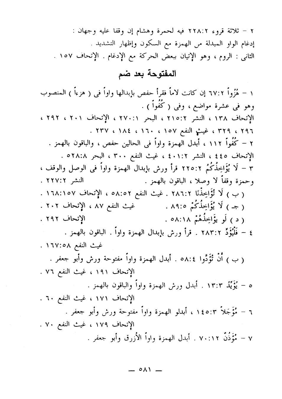 ب- لا تؤاخذنا 2: 286، غيث النفع 52: 58، الإتحاف 157: 168.