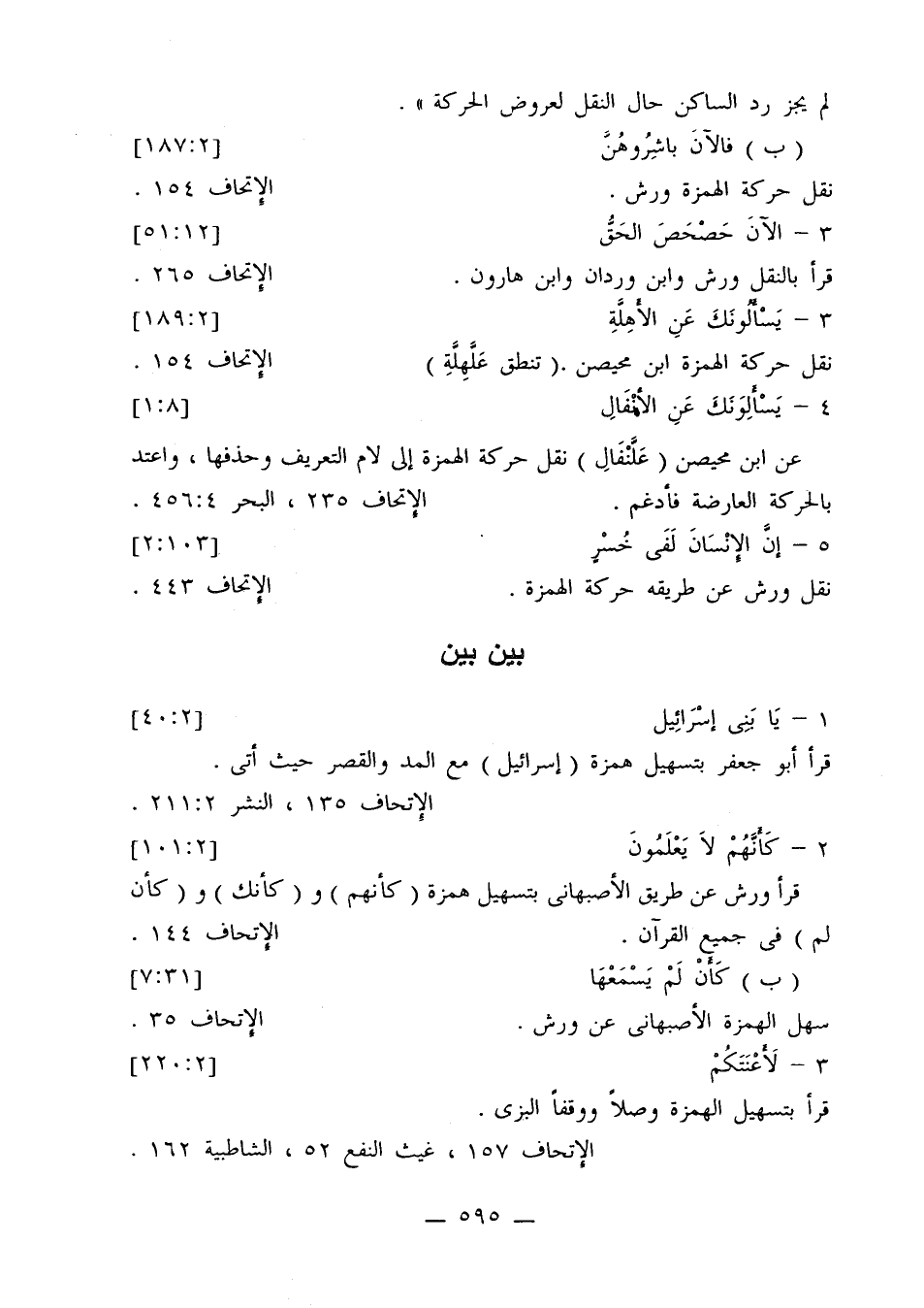 نقل حركة الهمزة ورش. الإتحاف 154.