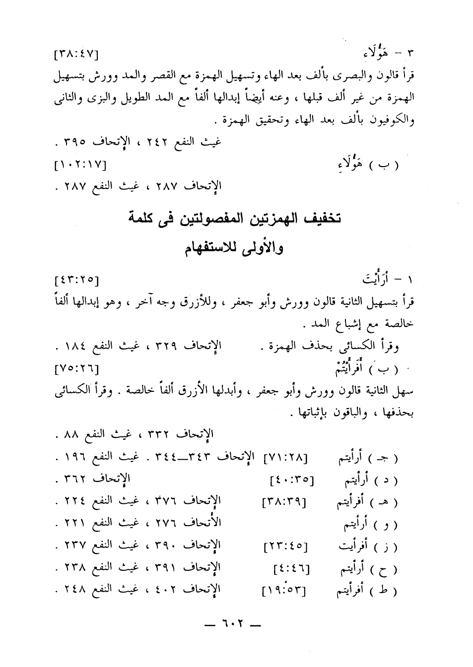 هـ- أفرأيتم [39: 38]. الإتحاف 376، غيث النفع 224.