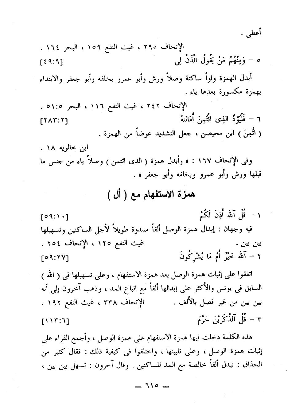 الإتحاف 242، غيث النفع 116، البحر 5: 51.
