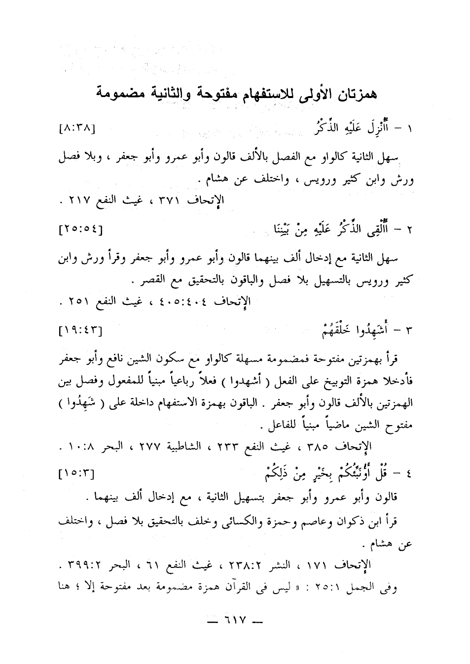 وفي الجمل 1: 25: «ليس في القرآن همزة مضمومة بعد مفتوحة إلا؛ هنا
