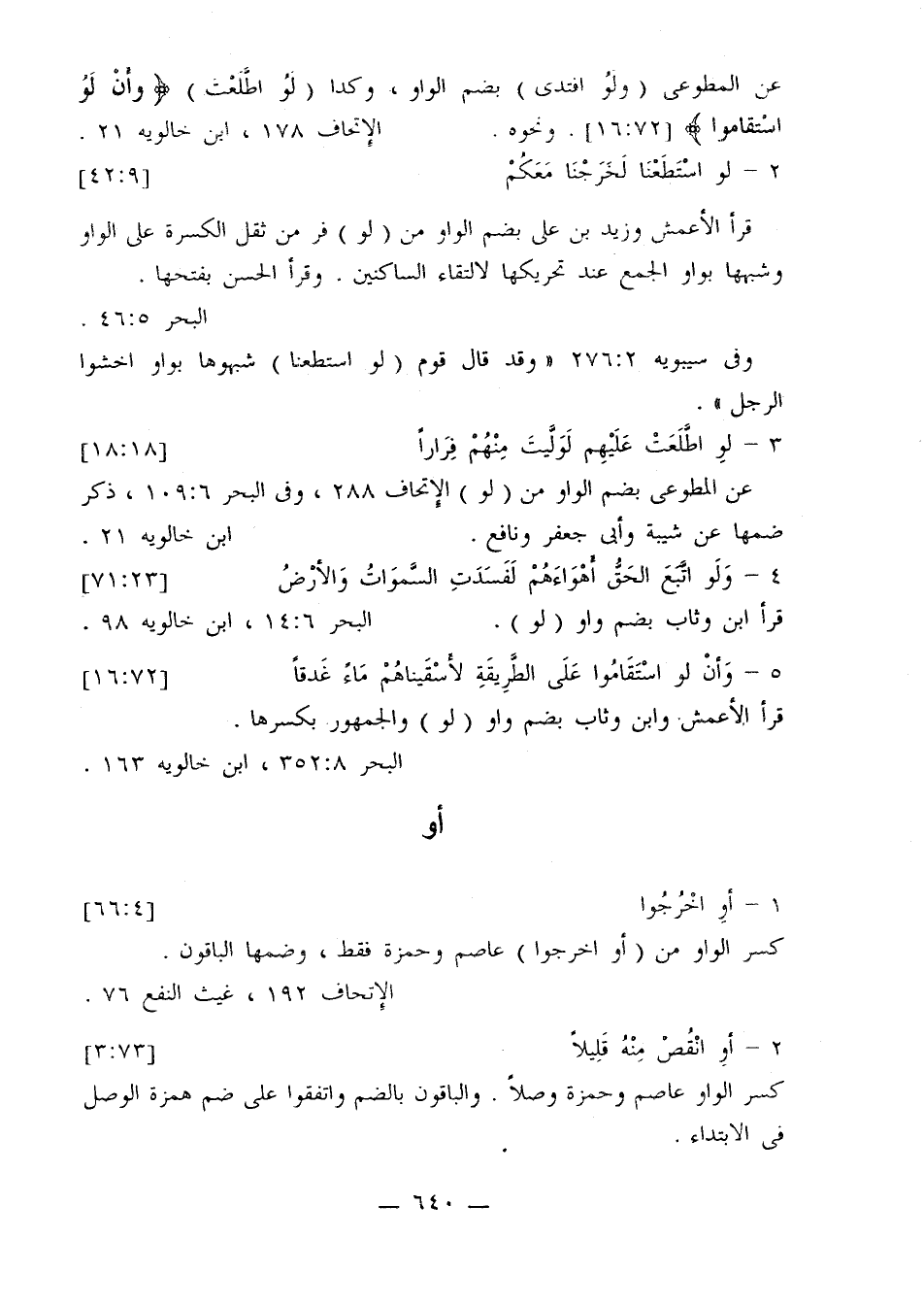 قرأ ابن وثاب بضم واو (لو). البح ر 6: 14، ابن خالويه 98.