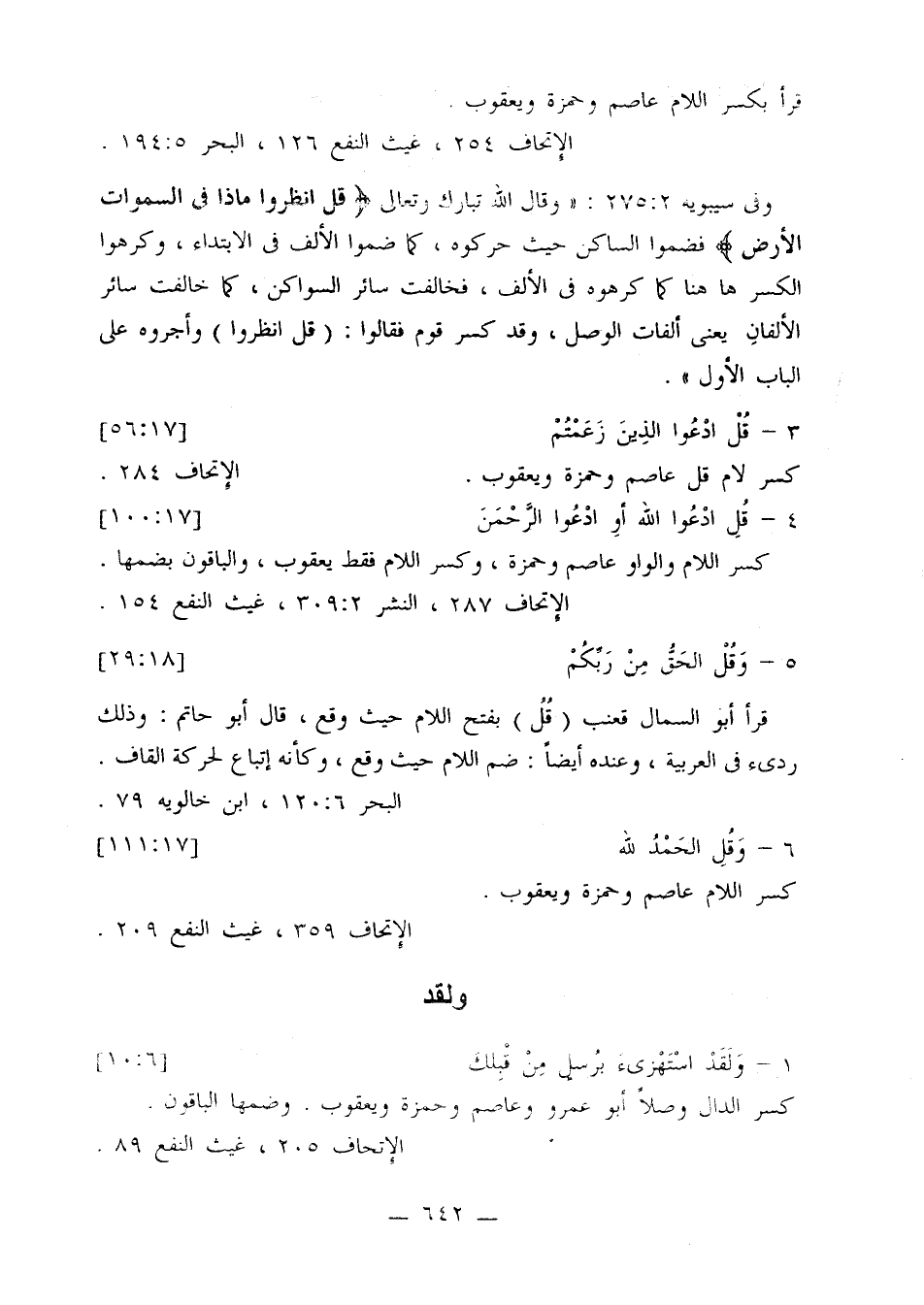 كسر لام قل عاصم وحمزة ويعقوب. الإتحاف 284.