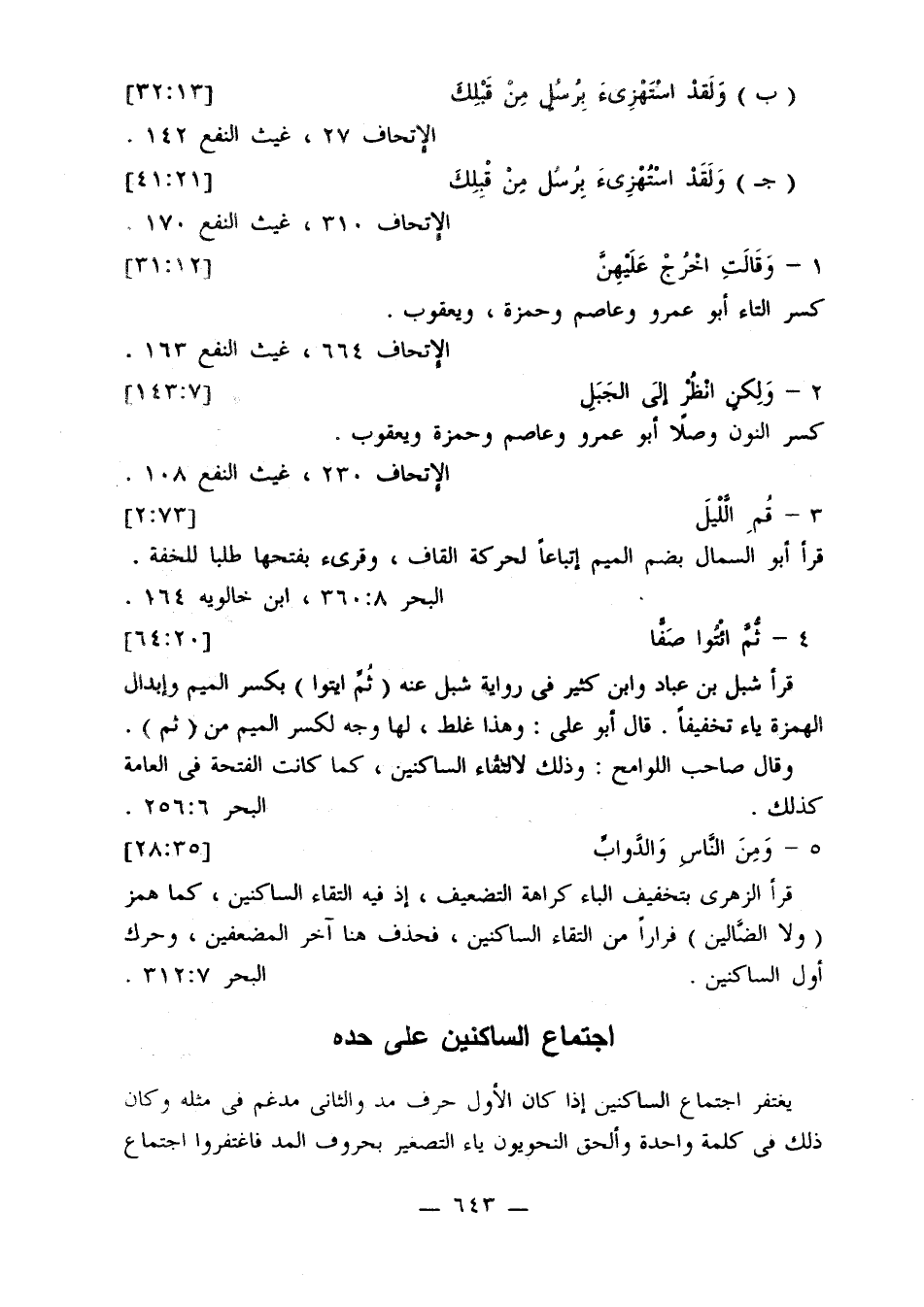 وقال صاحب اللوامح: وذلك لالتقاء الساكنين، كما كانت الفتحة في العامة كذلك. البحر 6: 256.