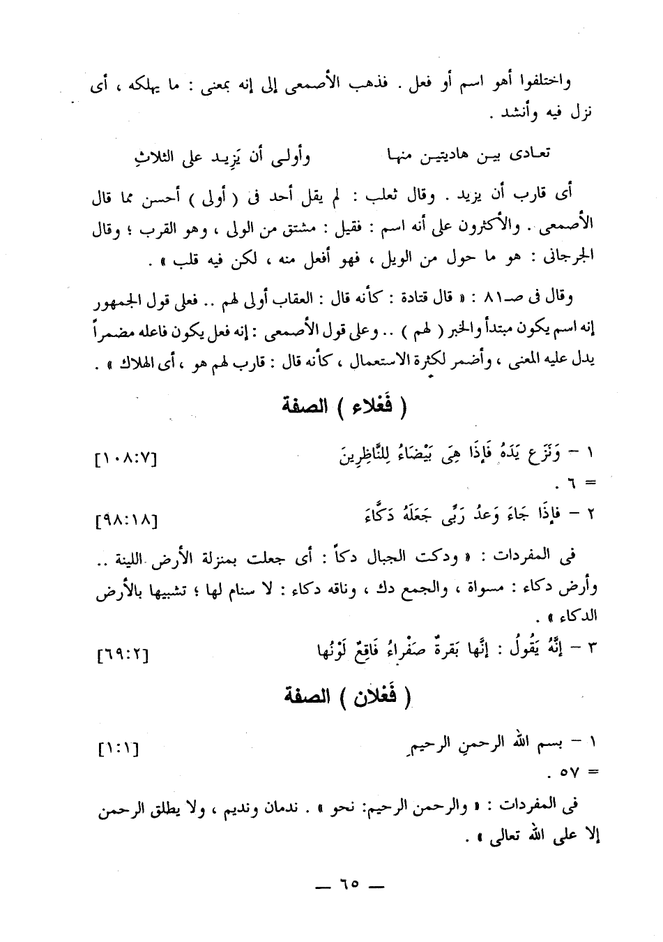 وقال في صت 81: «قال قتادة: كأنه قال: العقاب أولى لهم .. فعلى قول الجمهور أنه اسم يكون مبتدأ والخبر (لهم) .. وعلى قول الأصمعي: إنه فعل يكون فاعله مضمرًا يدل عليه المعنى، وأضمر لكثرة الاستعمال، كأنه قال: قارب لهم هو، أي الهلاك».