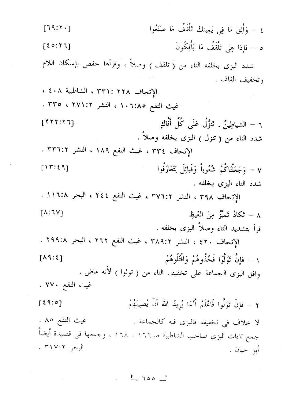 جمع تاءات البزي صاحب الشاطبية ص 166: 168، وجمعها في قصيدة أيضًا أبو حيان. البحر 2: 317.