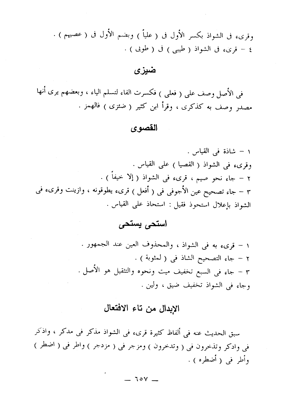 3 - جاء تصحيح عين الأجوفي في (أفعل) قرئ يطوقونه، وازينت وقرئ في الشواذ بإعلال استحوذ فقيل: استحاذ على القياس.