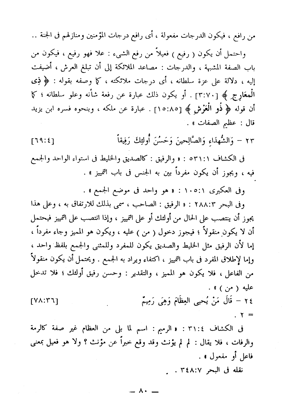 في الكشاف 531:1: «والرفيق: كالصديق والخليط في استواء الواحد والجمع فيه، ويجوز أن يكون مفردًا بين به الجنس في باب التمييز».