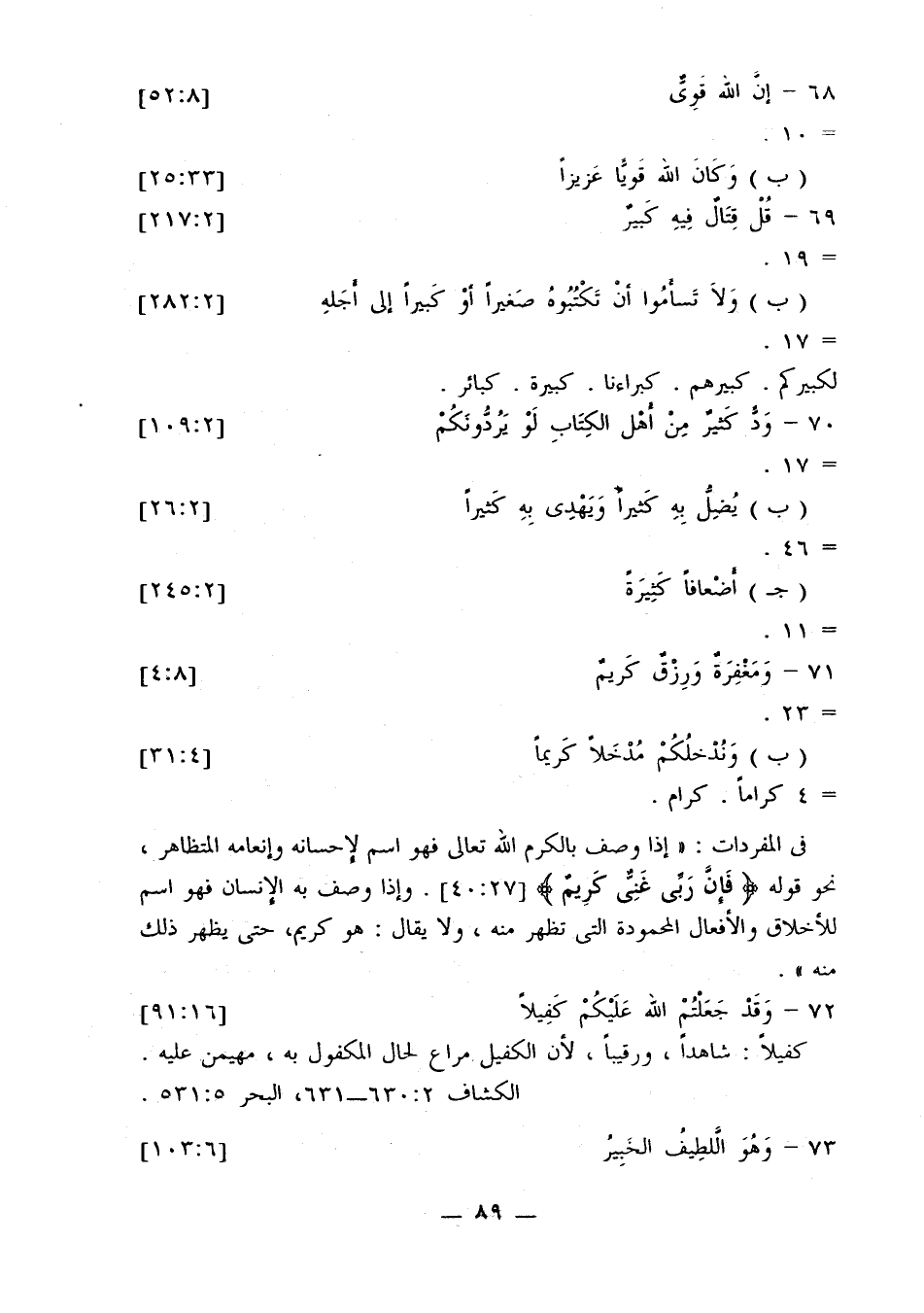 لكبيركم. كبيرهم. كبراءنا. كبيرة. كبائر.