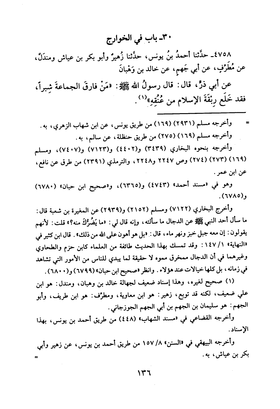 ٤٧٥٨ - حدَّثنا أحمدُ بنُ يونس، حدَّثنا زُهيرٌ وأبو بكر بن عياش ومندَلٌ، عن مُطَرِّفٍ، عن أبي جَهمٍ، عن خالد بن وَهْبانَ