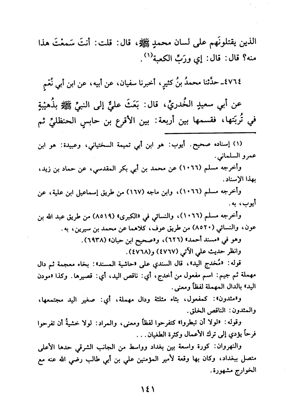 وانظر حديث علي الآتي (٤٧٦٧) و (٤٧٦٨).