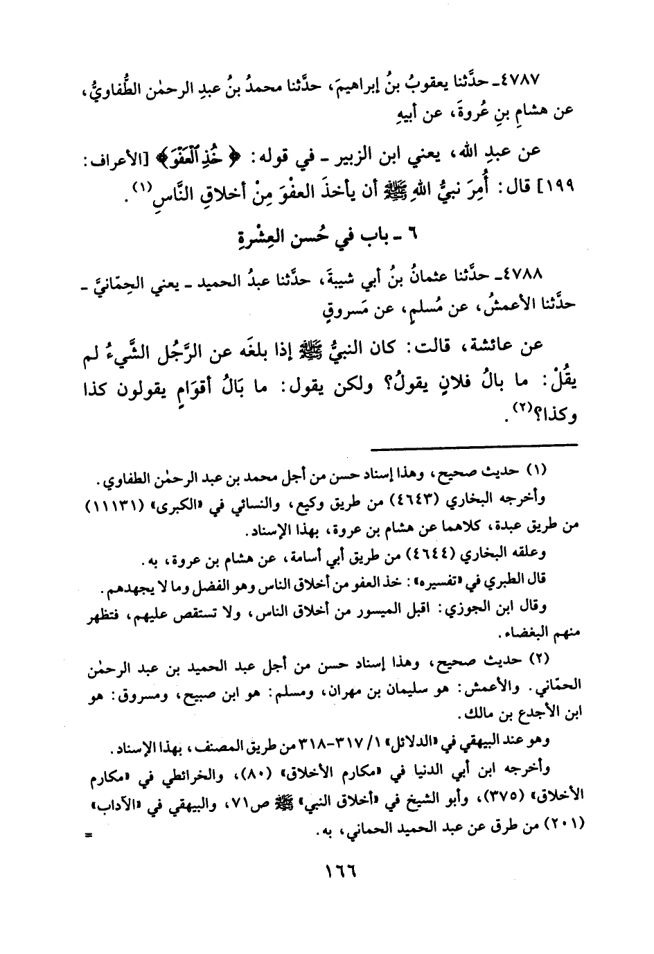 ٤٧٨٧ - حدَّثنا يعقوبُ بنُ إبراهيمَ، حدَّثنا محمدُ بنُ عبدِ الرحمن الطُّفاوىُّ، عن هشامِ بنِ عُروةَ، عن أبيهِ