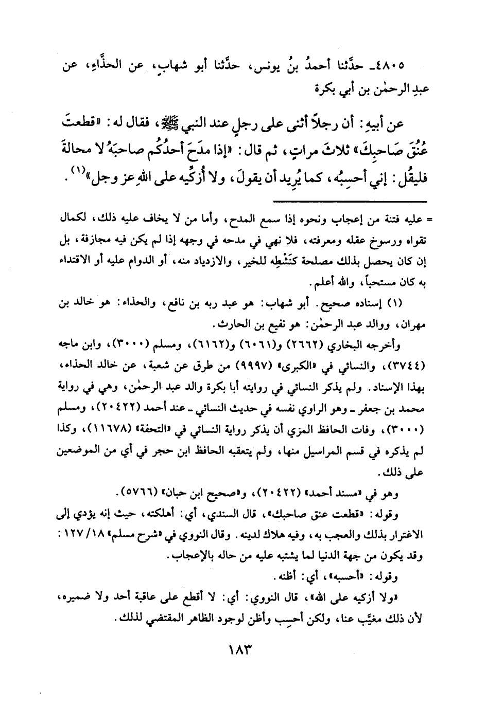 ٤٨٠٥ - حدَّثنا أحمدُ بنُ يونس، حدَّثنا أبو شهابٍ، عن الحذَّاءِ عن عبدِ الرحمن بن أبي بكرة