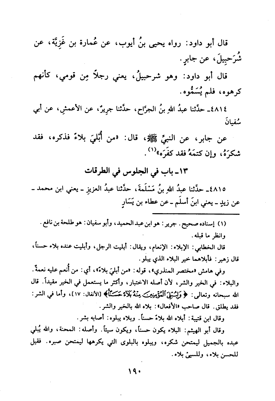 وفي هامش "مختصر المنذري"، قوله: " من أبليَ بلاءَ"، أي: من أُنعم عليه نعمةٌ.