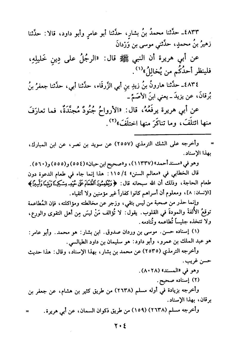 عن أبي هريرة أن النبي -صلى الله عليه وسلم- قال: "الرجُلُ على دِينِ خَليلِهِ، فلينظر أحدُكُم من يُخالِلُ" (¬١).