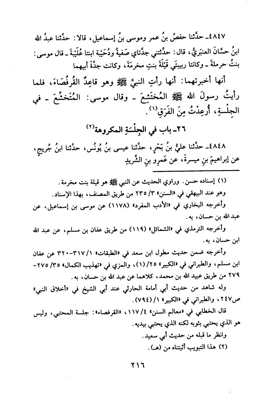 ٢٦ - باب في الجِلْسَةِ المكروهة (¬٢)
