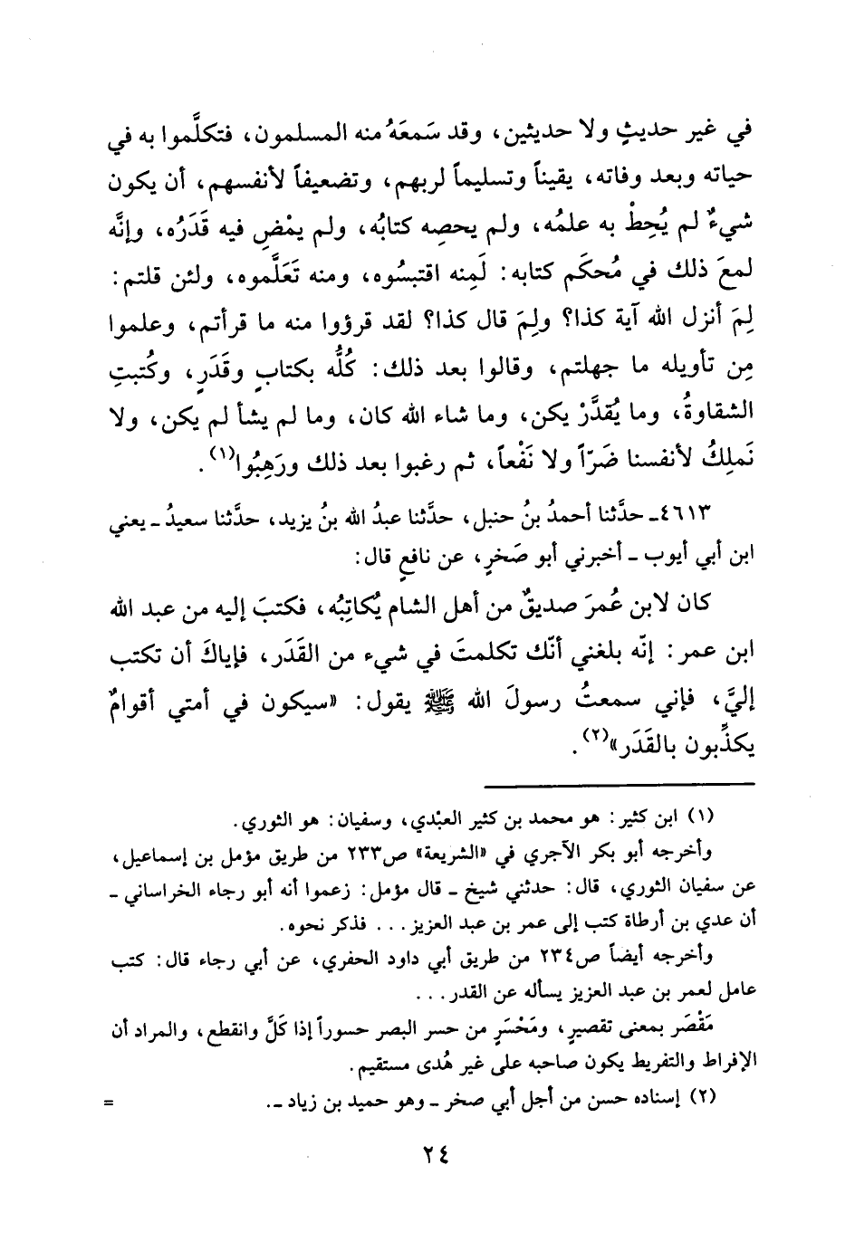وأخرجه أيضاً ص ٢٣٤ من طريق أبي داود الحفري، عن أبي رجاء قال: كتب عامل لعمر بن عبد العزيز يساله عن القدر ...