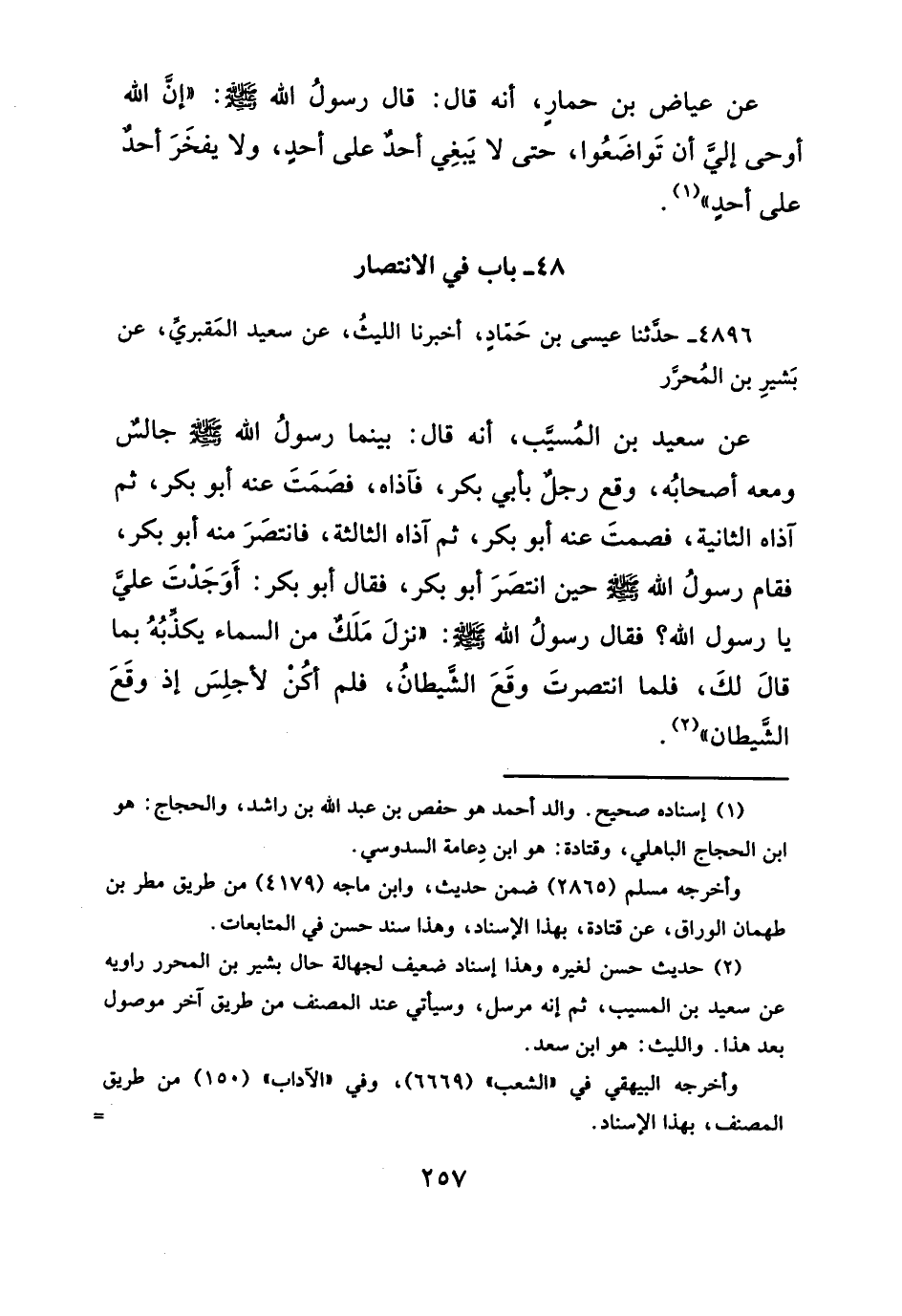 ٤٨٩٦ - حدَّثنا عيسى بن حَمّادٍ، أخبرنا الليثُ، عن سعيد المَقبرىِّ، عن بَشيرِ بن المُحرَّر
