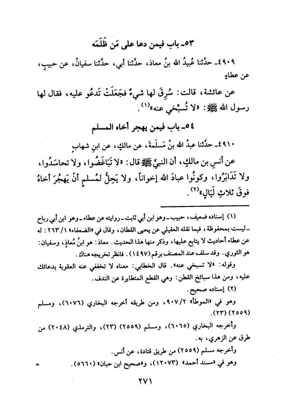 ٥٤ - باب فيمن يهجر أخاه المسلم