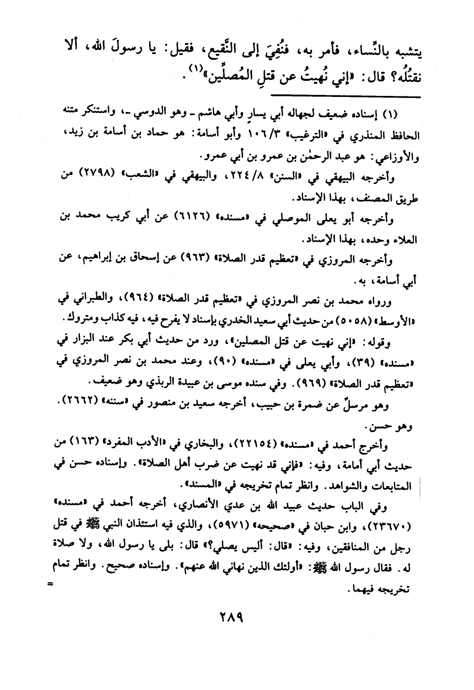 وأخرجه المروزي في "تعظيم قدر الصلاة" (٩٦٣) عن إسحاق بن إبراهيم، عن أبي أسامة، به. ورواه محمَّد بن نصر المروزي في" تعظيم قدر الصلاة" (٩٦٤)، والطبراني في "الأوسط" (٥٠٥٨) من حديث أبي سعيد الخدري بإسناد لا يفرح فيه، فيه كذاب ومتروك. وقوله: "إنى نهيت عن قتل المصلين"، ورد من حديث أبي بكر عند البزار في "مسنده" (٣٩)، وأبي يعلى في "مسنده" (٩٠)، وعند محمَّد بن نصر المروزي في "تعظيم قدر الصلاة" (٩٦٩). وفي سنده موسى بن عبيدة الربذي وهو ضعيف.