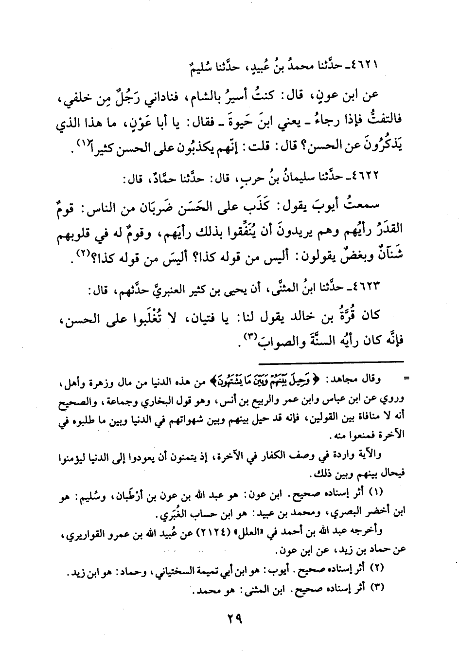(¬٢) أثر إسناده صحيح. أيوب: هو ابن أبي تميمة السختياني، وحماد: هو ابن زيد.