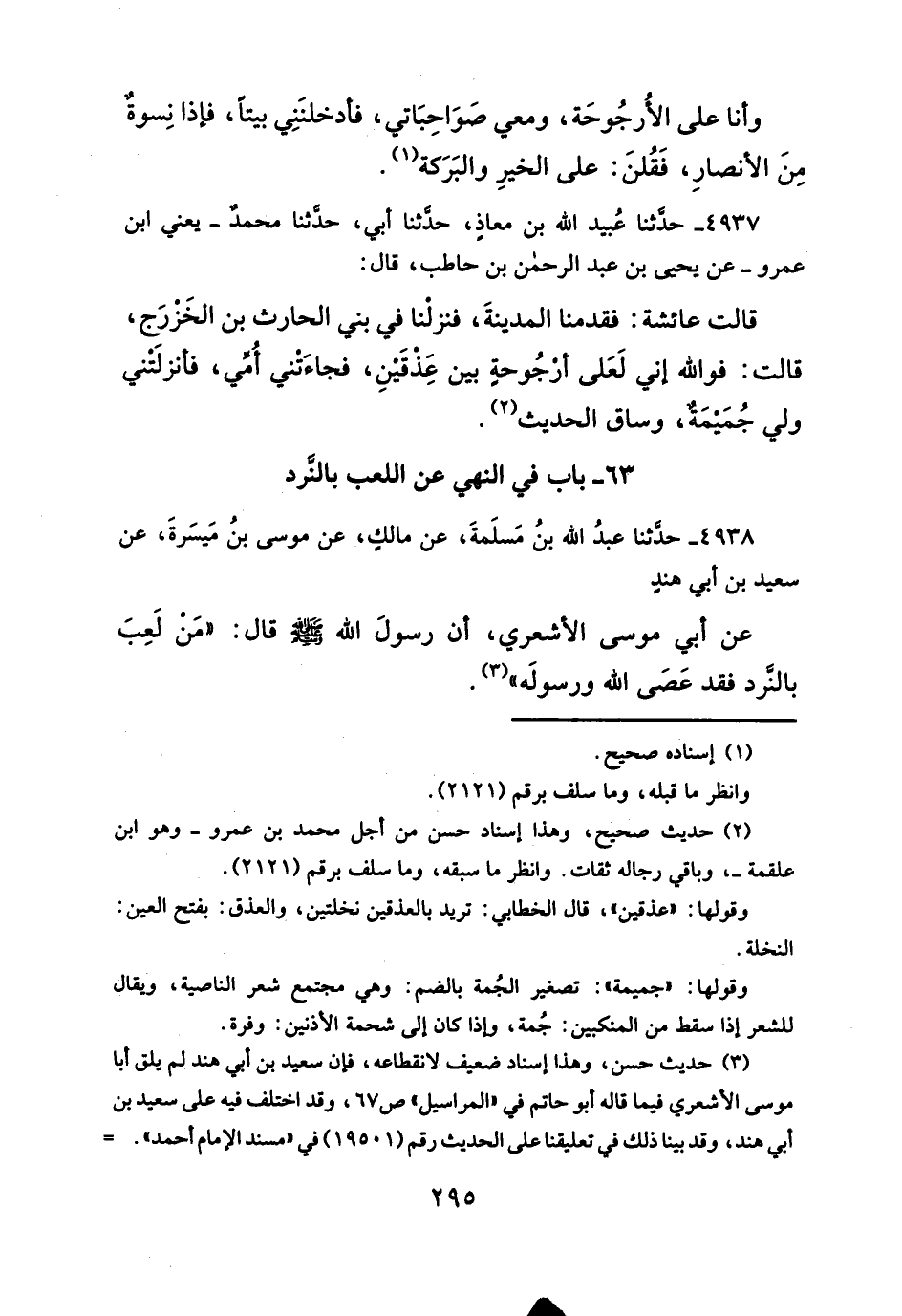 عن أبي موسى الأشعري، أن رسولَ الله -صلى الله عليه وسلم - قال: "مَن لَعِبَ بالنرد فقد عَصَى الله ورسولَه" (¬٣).