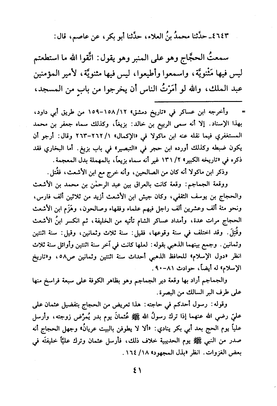 ٤٦٤٣ - حدَّثنا محمدُ بنُ العلاء، حدَّثنا أبو بكر، عن عاصم، قال: