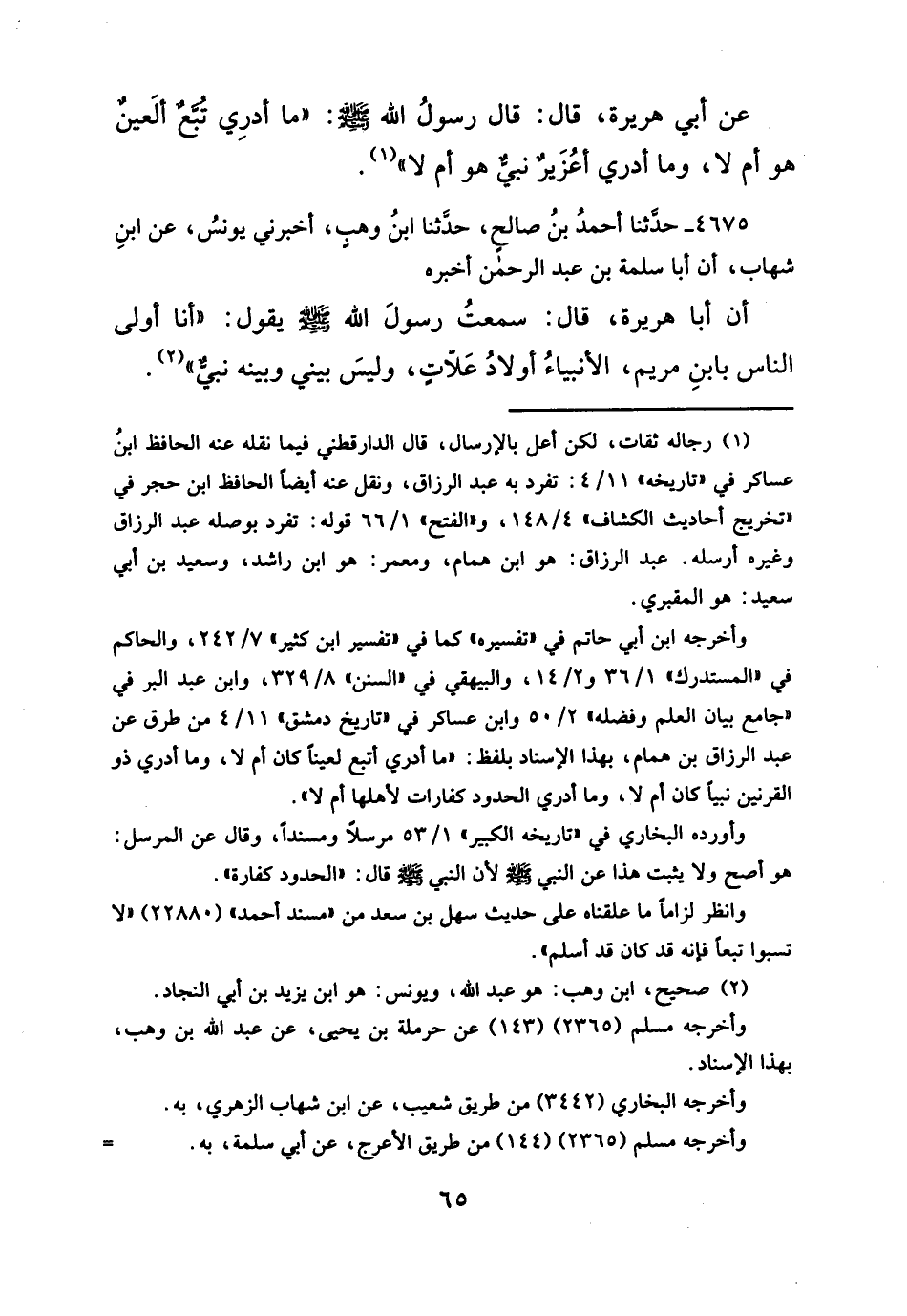 أن أبا هريرة، قال: سمعتُ رسولَ الله -صلى الله عليه وسلم - يقول: "أنا أولى الناس بابنِ مريم، الأنبياءُ أولادُ عَلّاتٍ، وليسَ بيني وبينه نبىٌّ" (¬٢).