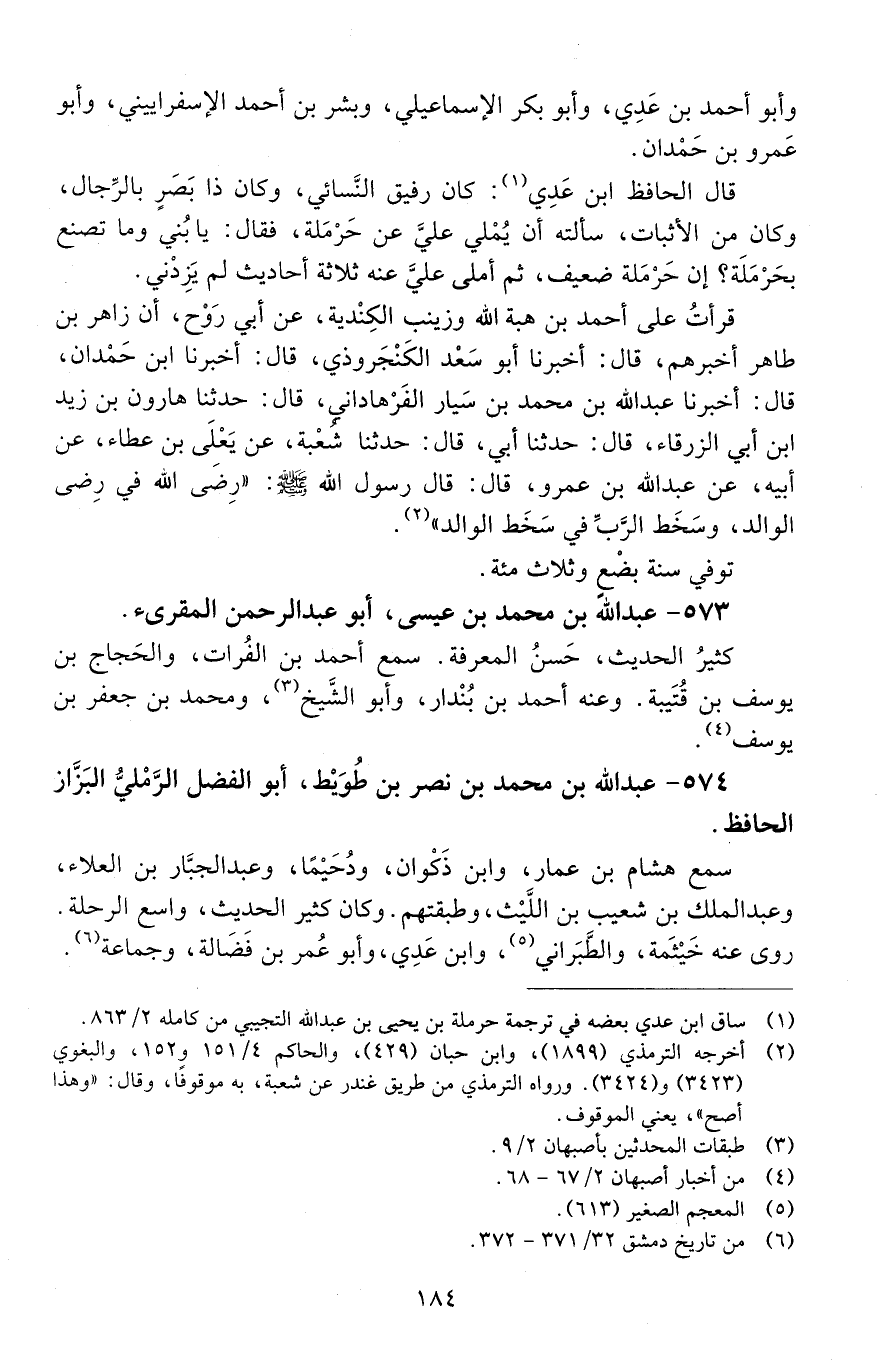 574 - عَبْد اللَّه بْن مُحَمَّد بْن نصر بْن طُوَيْط، أبو الفضل الرَّمْليّ البزّاز الحافظ. [الوفاة: 301 - 310 هـ]