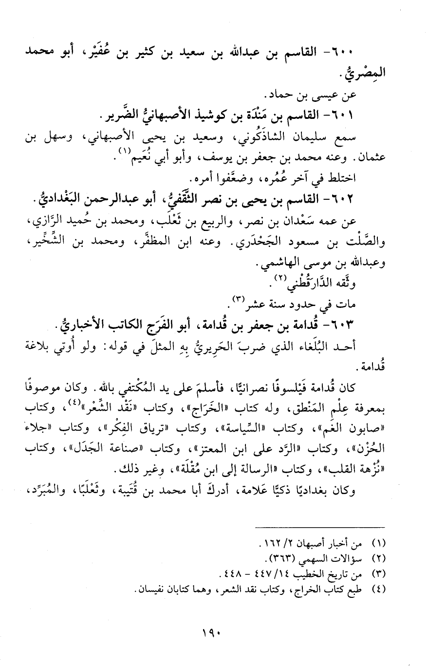 603 - قُدَامة بْن جعفر بْن قُدَامة، أبو الفَرَج الكاتب الإخباريّ. [الوفاة: 301 - 310 هـ]