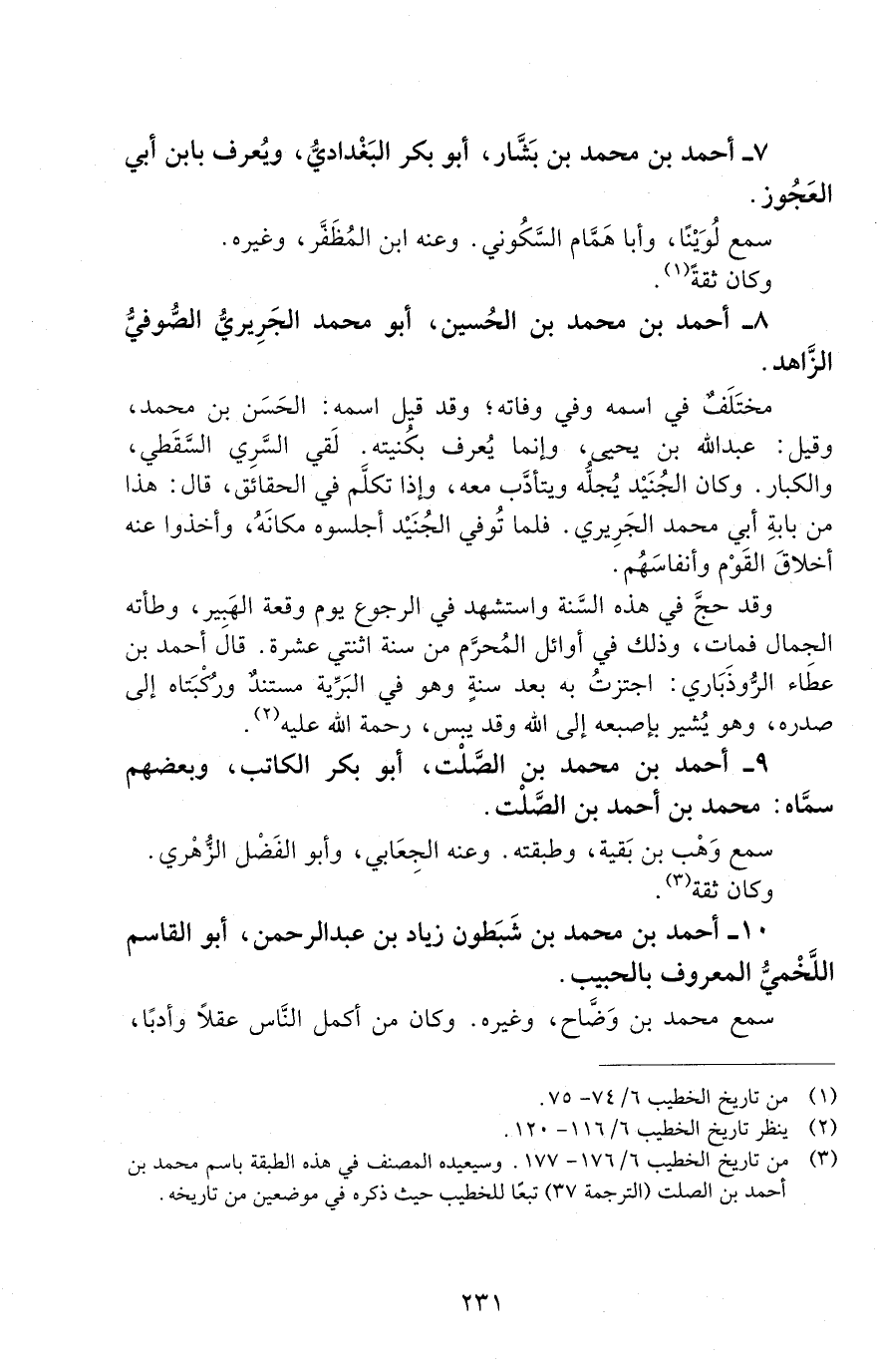 7 - أحمد بْن محمد بْن بشّار، أبو بَكْر البغداديّ، ويُعرف بابن أَبِي العجوز. [المتوفى: 311 هـ]