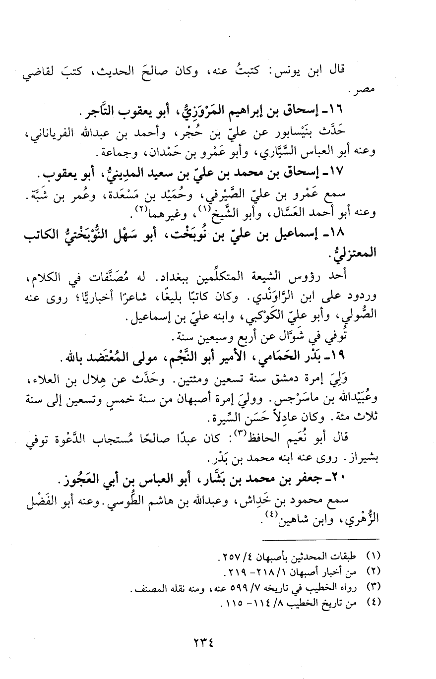 18 - إسماعيل بْن عليّ بْن نُوبَخْت، أبو سهل النّوَبْخِتيّ، الكاتب المعتزليّ. [المتوفى: 311 هـ]