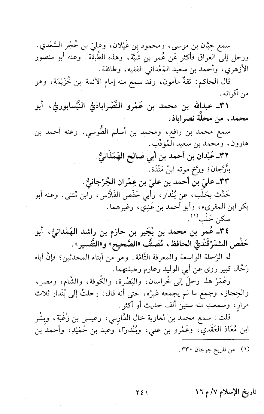 34 - عُمَر بْن محمد بْن بُجير بْن حازم بْن راشد الهَمْدانيّ، أبو حفص السَّمَرْقَنْديّ الحافظ، [المتوفى: 311 هـ]