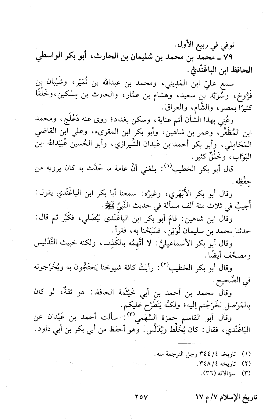 79 - محمد بْن محمد بْن سُليمان بْن الحارث، أبو بَكْر الواسطيّ الحافظ ابن الباغندي. [المتوفى: 312 هـ]
