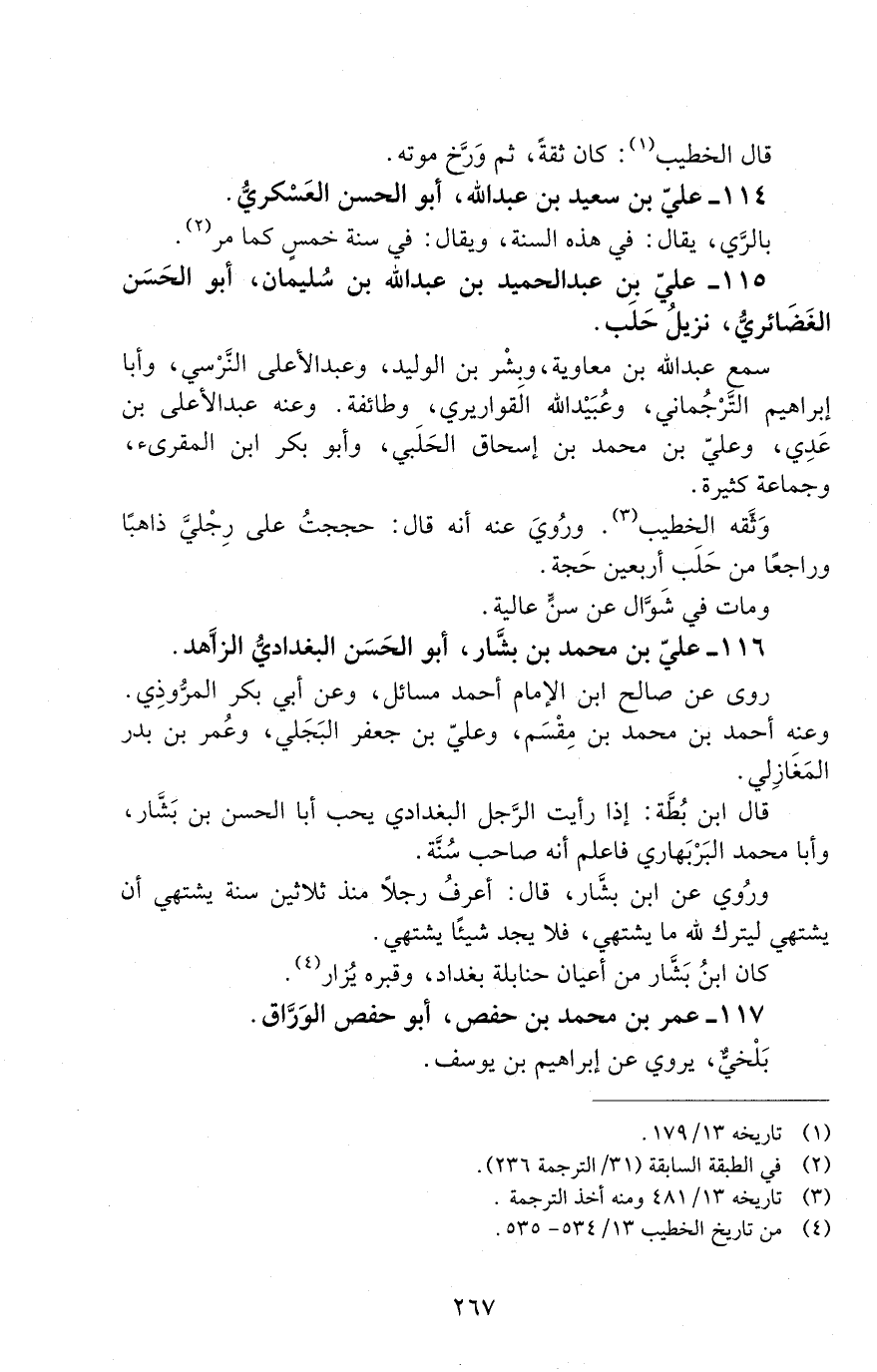 116 - عليّ بْن محمد بْن بشّار، أبو الحَسَن البغداديّ الزّاهد. [المتوفى: 313 هـ]