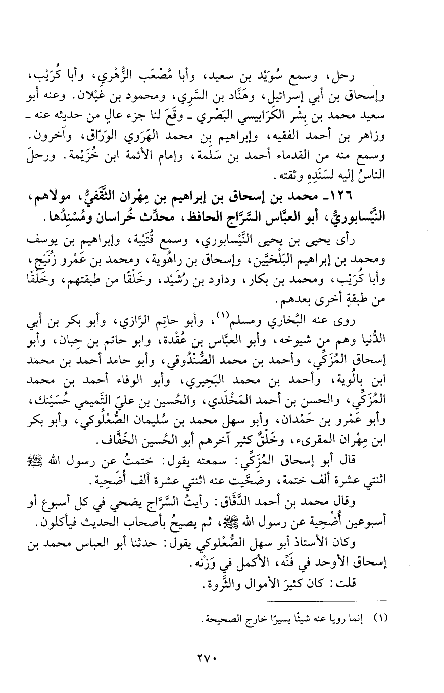 126 - محمد بن إسحاق بن إبراهيم بن مهران الثقفي، مولاهم النَّيْسابوريّ، أبو العبّاس السّرّاج الحافظ، [المتوفى: 313 هـ]