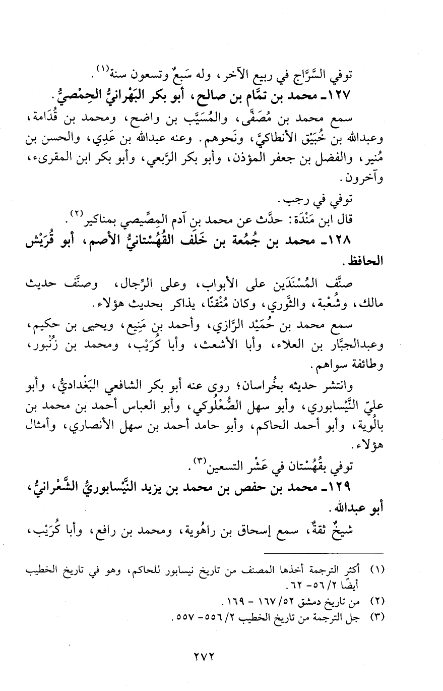 127 - محمد بْن تمّام بْن صالح، أبو بَكْر البَهْرانيّ الحِمصيّ. [المتوفى: 313 هـ]
