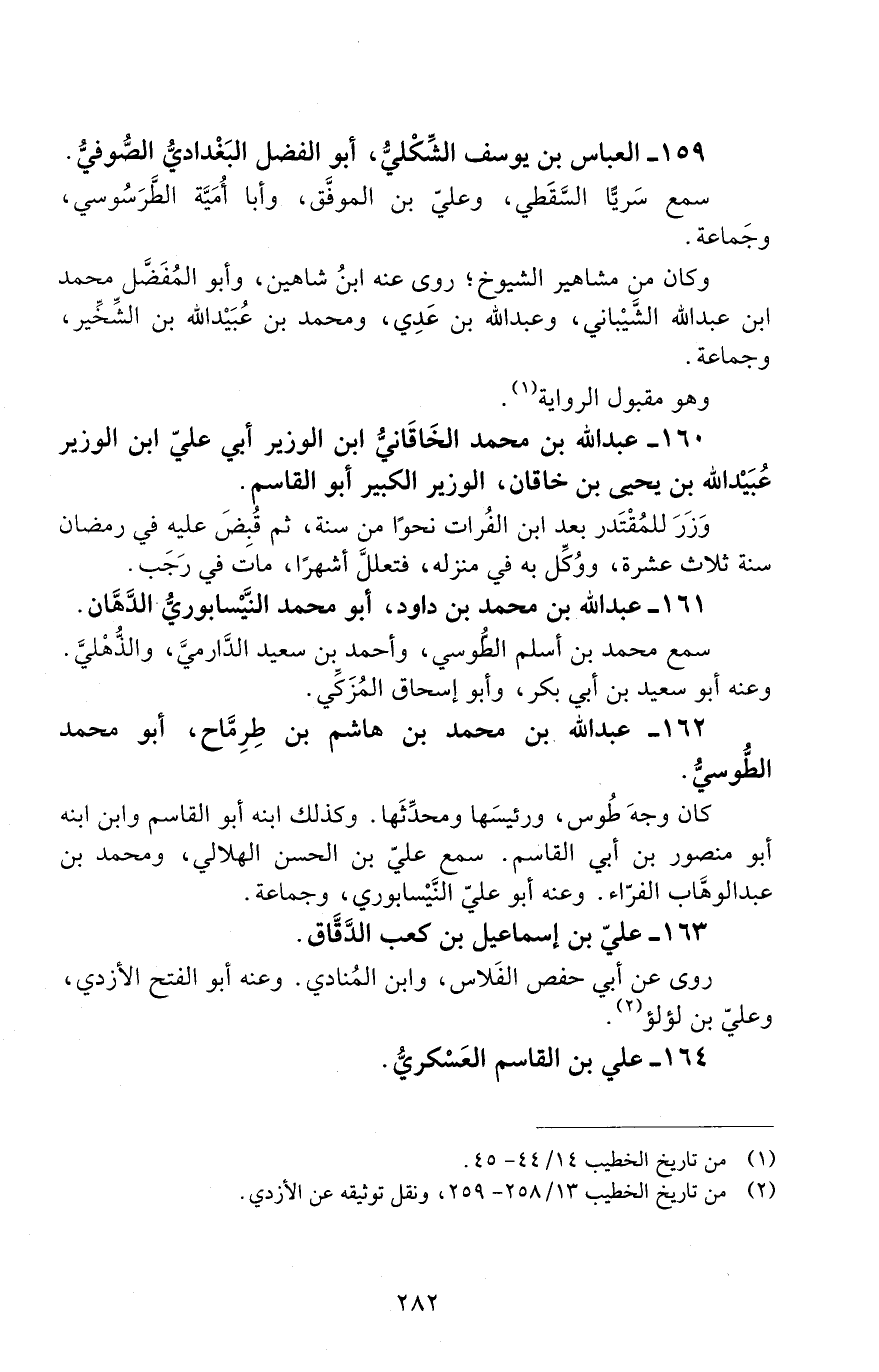 160 - عَبْد اللَّه بْن محمد الخاقاني ابن الوزير أبي عليّ ابْن الوزير عُبَيْد اللَّه بْن يحيى بْن خاقان، الوزير الكبير أبو القاسم. [المتوفى: 314 هـ]