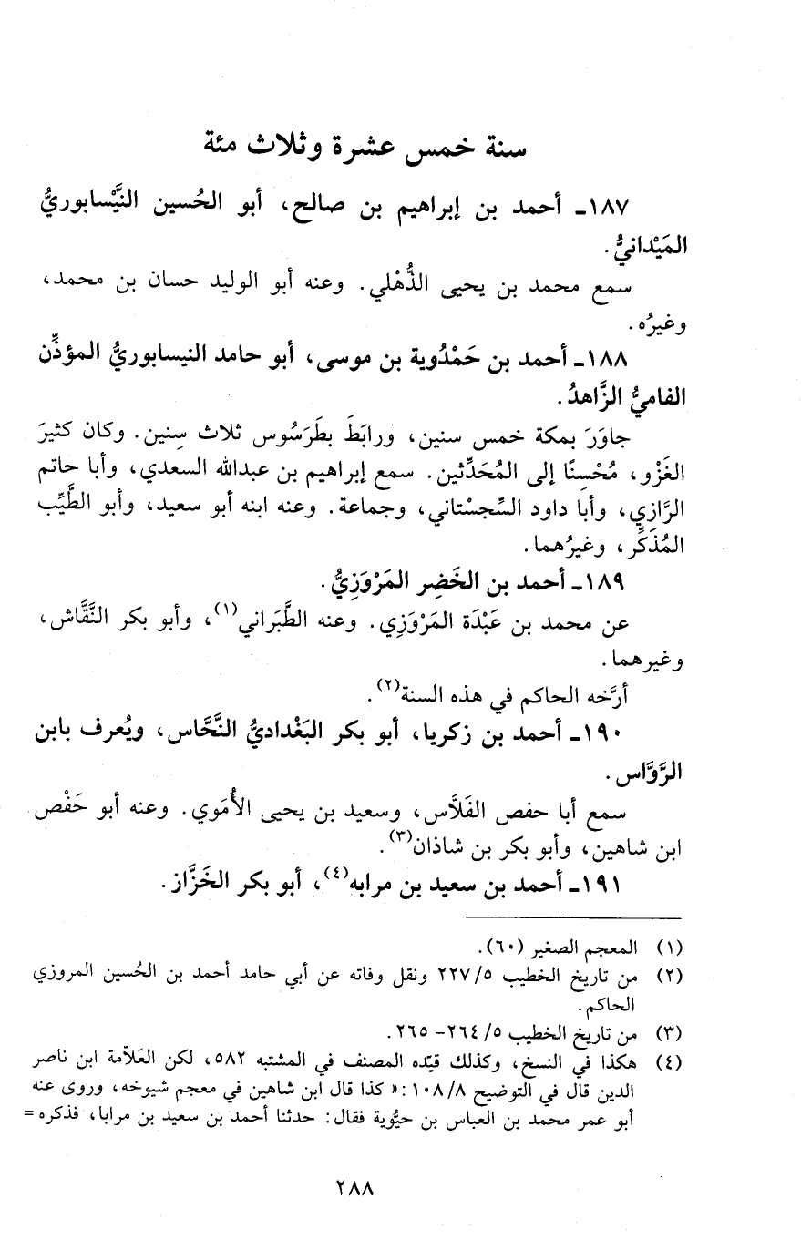 187 - أحمد بْن إبراهيم بْن صالح، أبو الحُسين النَّيْسابوريّ المَيْدانيّ. [المتوفى: 315 هـ]
