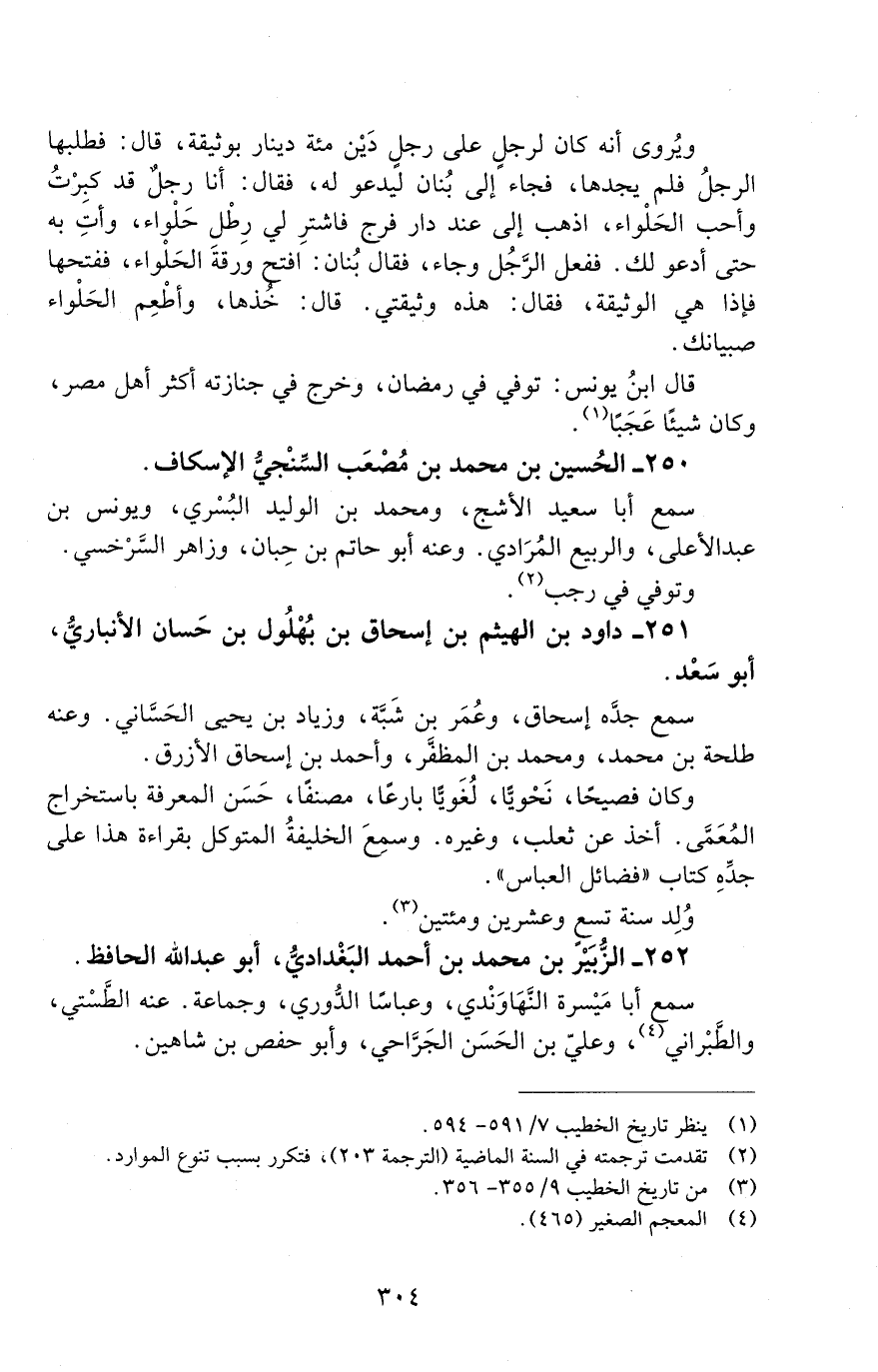 250 - الحُسين بْن محمد بْن مُصْعَب السِّنْجيّ الإسكاف. [المتوفى: 316 هـ]