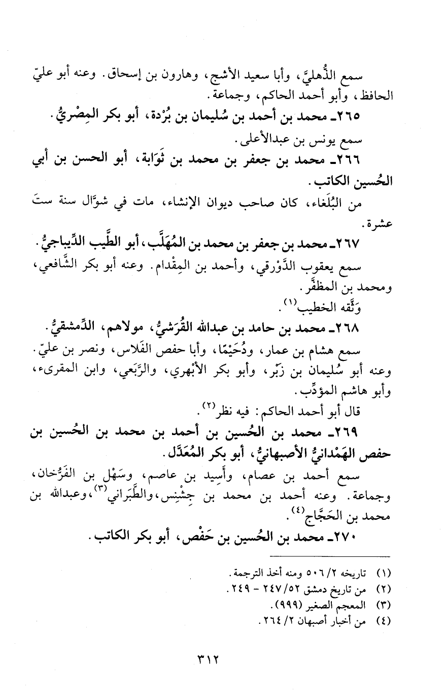 269 - محمد بْن الحُسين بْن أحمد بْن محمد بْن الحُسين بْن حفص الهَمْدانيّ الإصبهانيّ، أبو بَكْر الْمُعَدَّلُ. [المتوفى: 316 هـ]