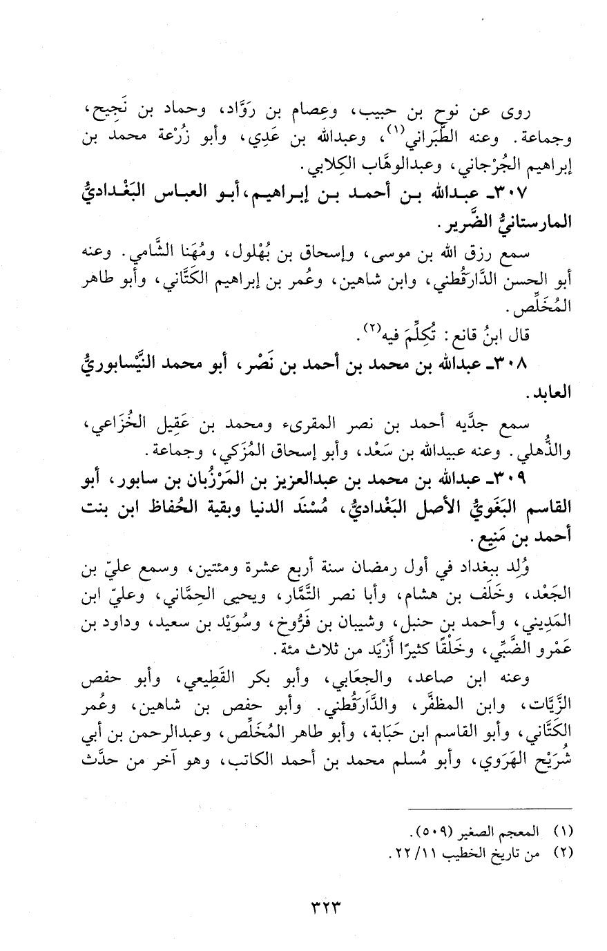 307 - عَبْد الله بْن أحمد بْن إبراهيم، أبو العبّاس البغداديّ المارستاني الضّرير. [المتوفى: 317 هـ]