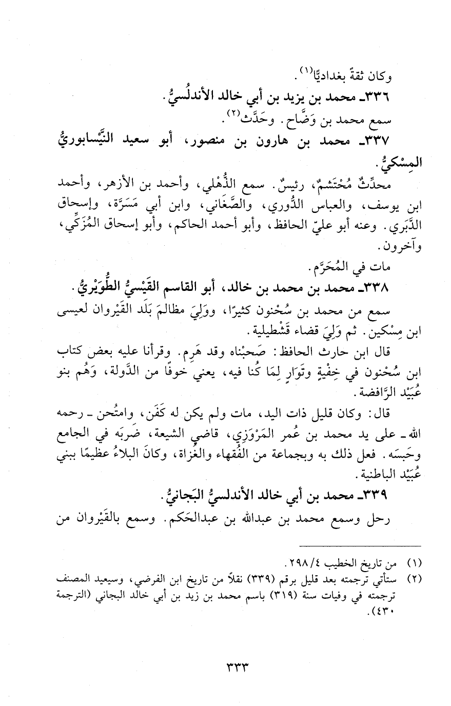 339 - محمد بْن أَبِي خَالِد الأندلسي البَجّانيّ. [المتوفى: 317 هـ]