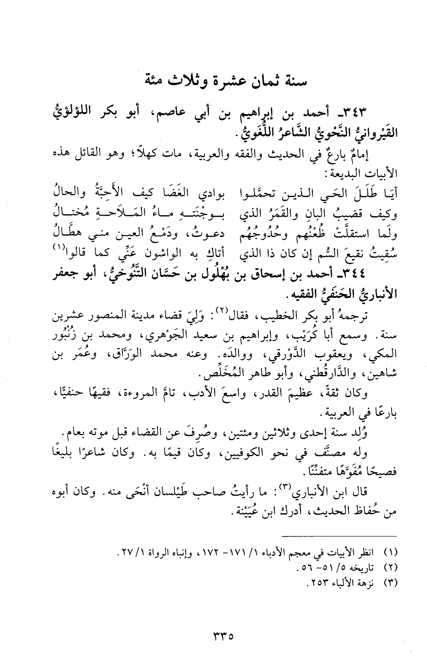 343 - أحمد بْن إبراهيم بْن أَبِي عاصم، أبو بَكْر اللُّؤلُؤيّ القَيْروانيّ النَّحْويّ الشاعر اللغوي. [المتوفى: 318 هـ]