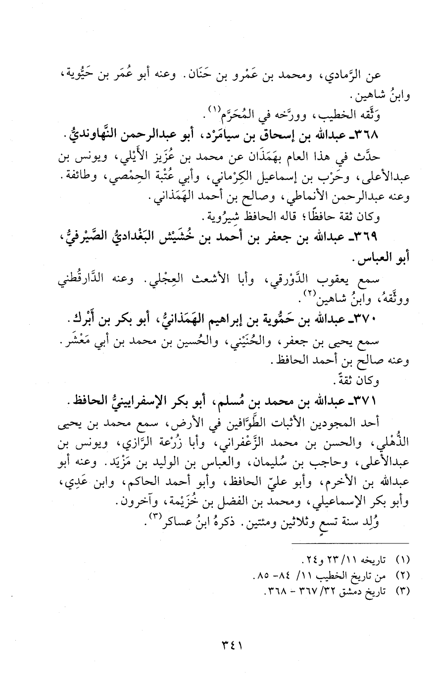 371 - عبد الله بن محمد بن مُسْلِم، أبو بَكْر الإسْفَرايينيّ الحافظ. [المتوفى: 318 هـ]