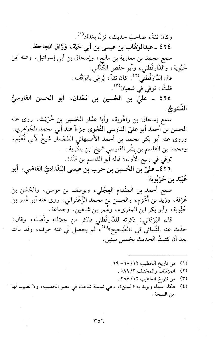426 - عليّ بْن الحُسين بْن حرب بْن عيسى البغداديّ القاضي، أبو عُبَيْد بْن حربَوَيْه. [المتوفى: 319 هـ]
